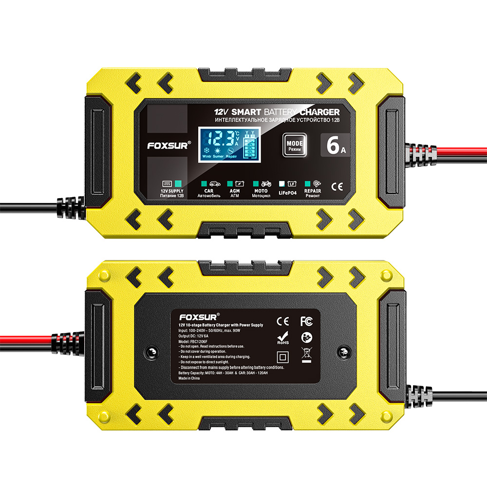 12V6A car and motorcycle battery charger, low voltage start charging, intelligent repair, multifunctional charger