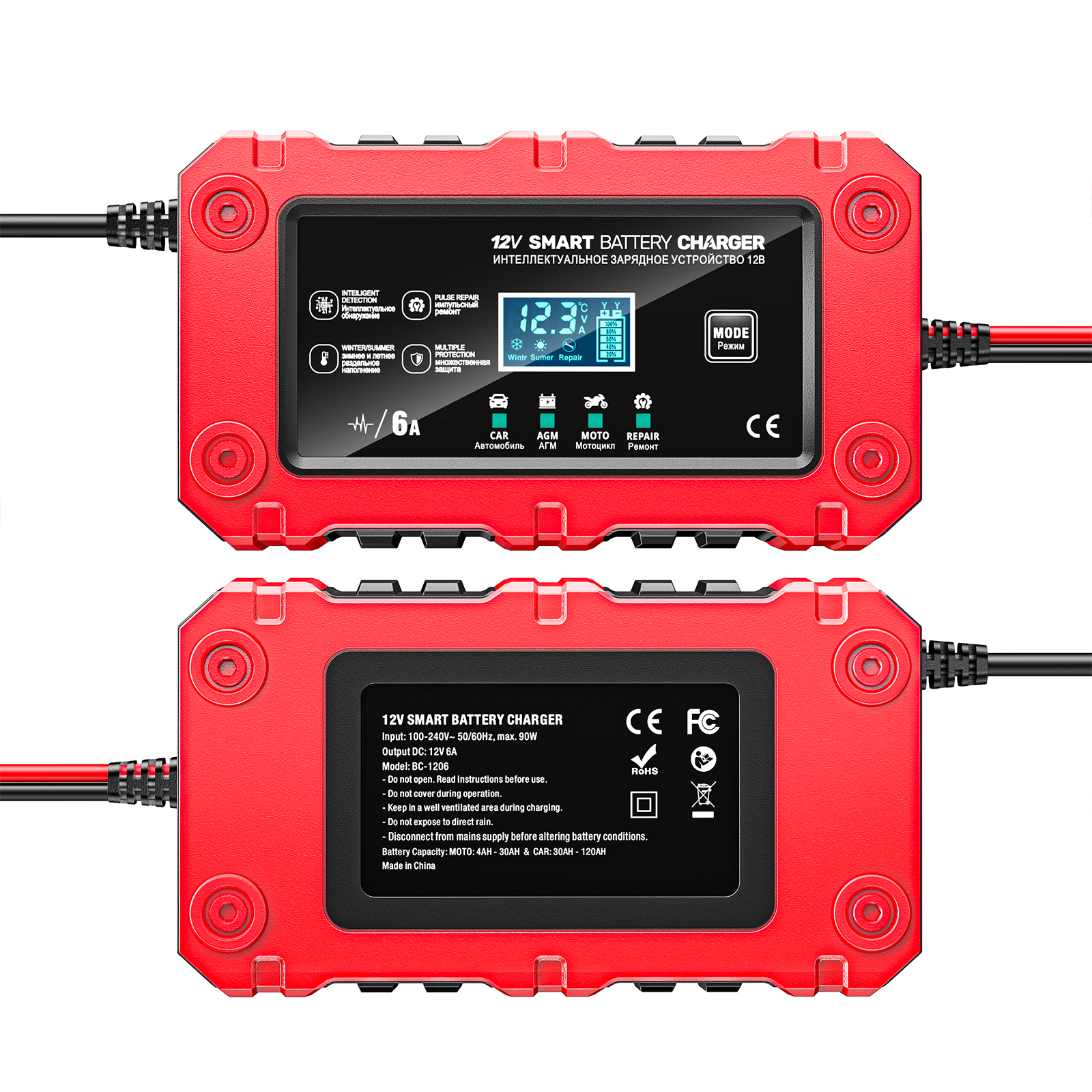 【VISUALISED CHARGING】 The large LCD display shows the charging and battery status, including charge voltage, charge current, internal temperature, charge percentage, summer mode and winter mode. , making it more convenient to use.